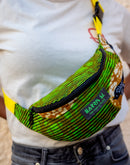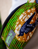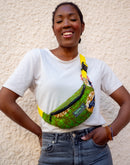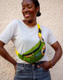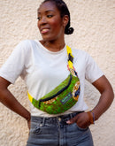 Le sac banane wax se porte en bandoulière pour un style actuel et tendance.