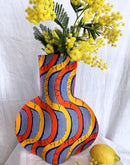 Le cache vase par Harris M, une matière simple de mettre de la couleur dans son intérieur. Il est fabriquer à la main à Paris avec du tissu pagne (wax)