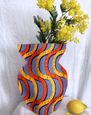 Le cache vase en bogolan par Harris M, une matière simple de mettre de la couleur dans son intérieur. Il est fabriquer à la main à Paris avec du tissu pagne (wax)