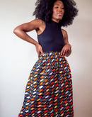 Jupe midi en imprimé Wax africain - Bogo noir