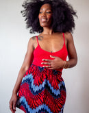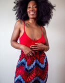 N'hésitez pas à porter cette jupe en wax en mode taille haute pour un effet habillé avec des talons ou des chaussures compensées. Pour les working girls, cette jupe est parfaite avec une chemise blanche.