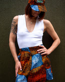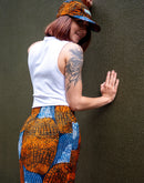 N'hésitez pas à porter cette jupe en wax en mode taille haute pour un effet habillé avec des talons ou des chaussures compensées. Pour les working girls, cette jupe est parfaite avec une chemise blanche.