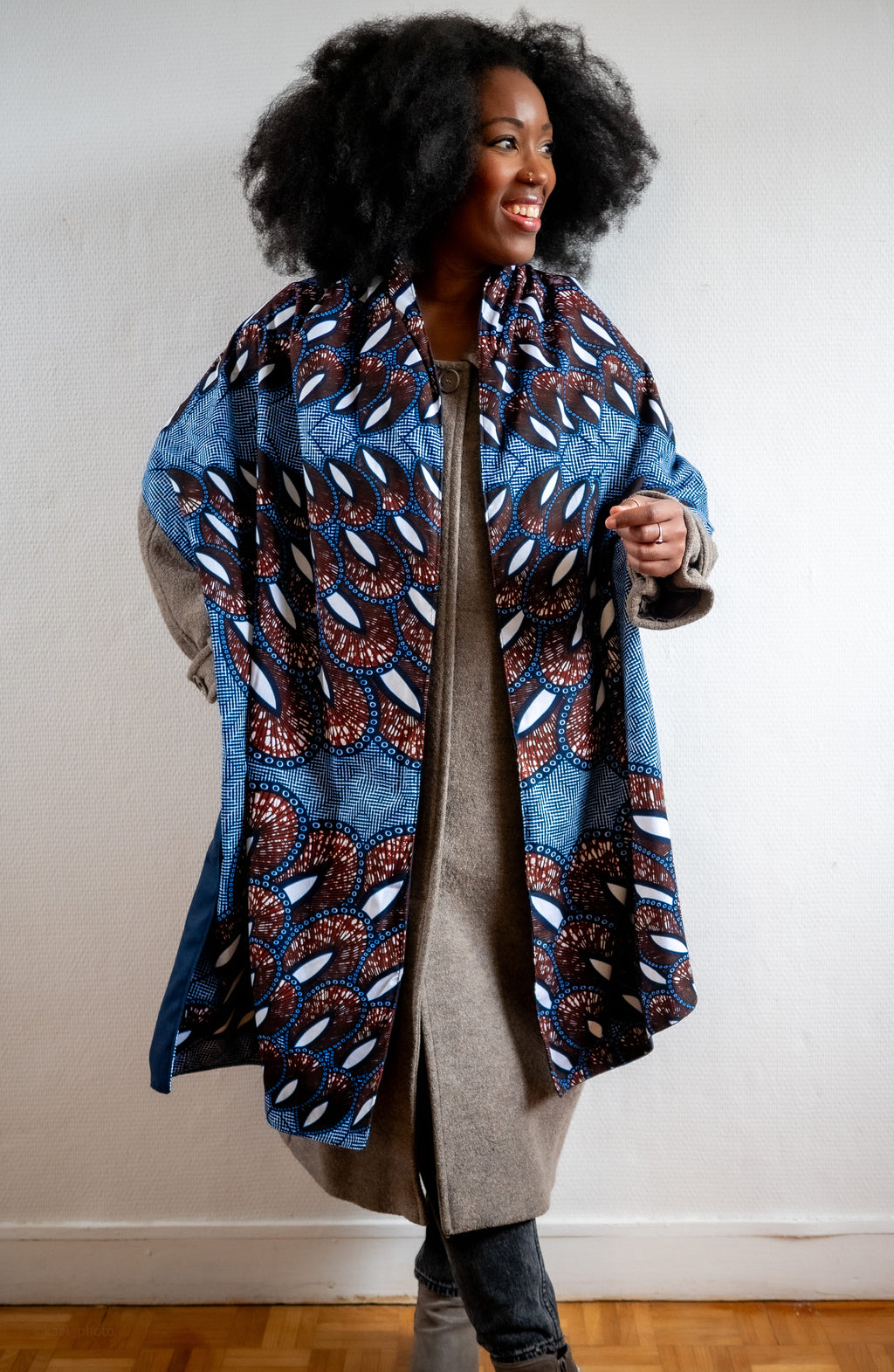 Echarpe wax - Makaya Bleu    Ajoutez une touche unique et chaleureuse à votre garde-robe avec cette écharpe max  bi-matière au design original. Attention vous allez aimer aller dehors drapé de nos écharpes par temps froid   Pou...