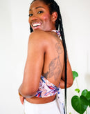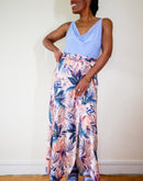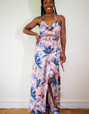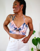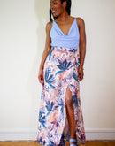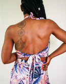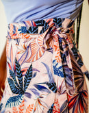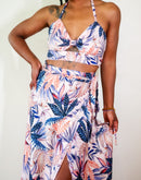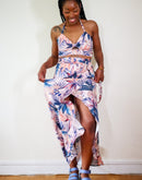 Composé d’une jupe portefeuille à nouer taille haute et d’un top dos nu à nouer, il mixe sensualité, confort et fluidité.
