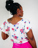 Avec sa coupe courte et ajustée, son encolure cœur ultra flatteuse et ses manches bouffantes, il sublime toutes les silhouettes et t’accompagne pour un look solaire, de jour comme de nuit.