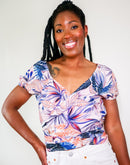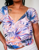 Avec sa coupe courte et ajustée, son encolure cœur ultra flatteuse et ses manches bouffantes, il sublime toutes les silhouettes et t’accompagne pour un look solaire, de jour comme de nuit.