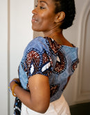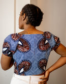 Avec son encolure en cœur ultra flatteuse, ses manches bouffantes élastiquées et sa coupe courte ajustée, ce top est la pièce parfaite pour un look à la fois sexy et stylé. Son tissu wax 100 % coton, léger et respirant, vous assure un confort absolu tout au long de la journée.