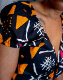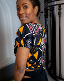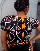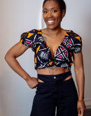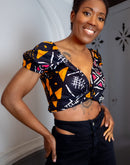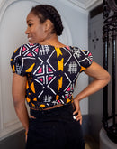 Avec son encolure en cœur ultra flatteuse, ses manches bouffantes élastiquées et sa coupe courte ajustée, ce top est la pièce parfaite pour un look à la fois sexy et stylé. Son tissu wax 100 % coton, léger et respirant, vous assure un confort absolu tout au long de la journée.