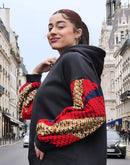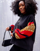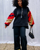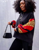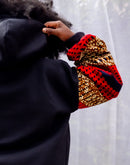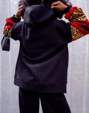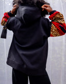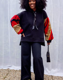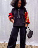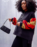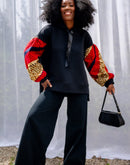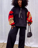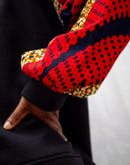 Hoodie en imprimé Wax africain - Motema - Noir et Rouge